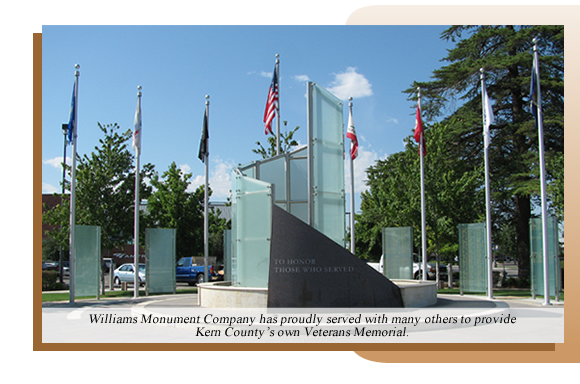 Thank you for taking the time to view our website. Williams Monument Company has been designing and creating unique and personalized memorials, monuments, benches, and signs since 1997. Our caring and compassionate staff strives for excellence, using the highest quality materials in the industry along with expert craftsmanship to customize to your needs. Whether it is the loss of a loved one or to commemorate that special event; we offer a wide variety of colors, sizes, and shapes.